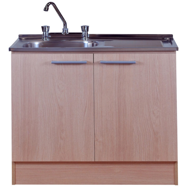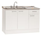 | INCLUYE: | Cubierta lavaplatos con rebalse, desagüe, llave combinación. 2 tiradores plásticos 128 mm, rieles corredera metálicos de 40 cm | |||