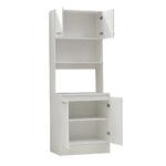 Fabricado en madera aglomerada con acabado en melamina blanca, combina resistencia, durabilidad y fácil limpieza, ideal para el uso diario. Su diseño compacto y elegante permite integrarlo perfectamente en cocinas de distintos estilos.