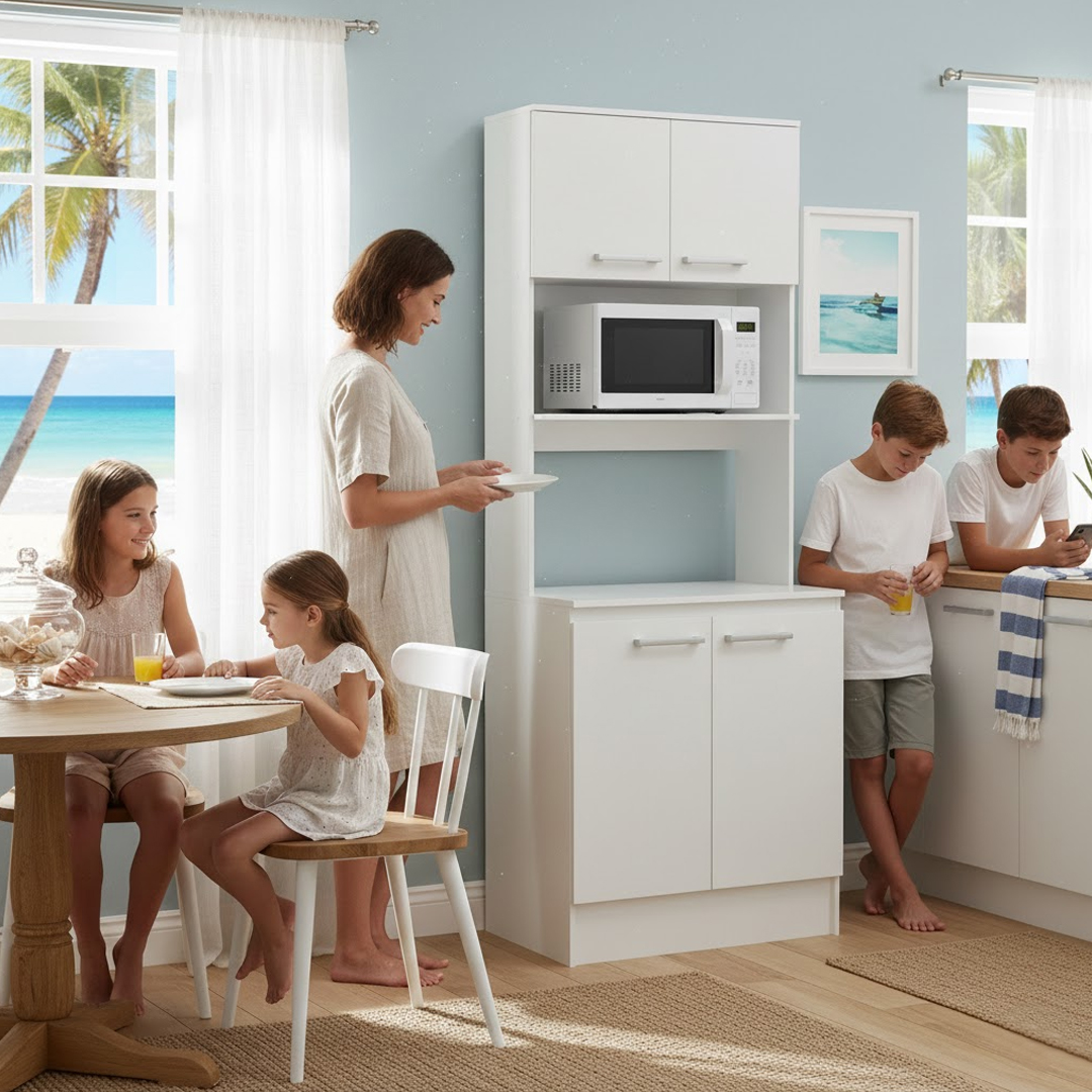 El Base Horno 700 Blanco de Mobikit es una excelente alternativa para quienes buscan organización, funcionalidad y diseño moderno en su cocina. Este mueble ofrece una solución práctica para instalar el horno y aprovechar al máximo el espacio vertical con cuatro puertas que brindan amplio espacio de almacenamiento para utensilios, alimentos o pequeños electrodomésticos.